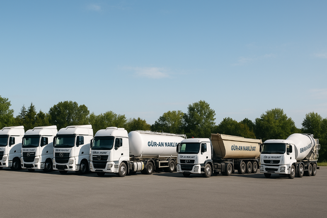 Öz Güran İş Makineleri, farklı sektörlere yönelik ihtiyaçlara cevap verebilecek geniş ve modern bir araç filosuna sahiptir. Tankerlerden mikserlere, silobas araçlardan konteyner taşıyıcılara kadar her biri düzenli bakımları yapılan, ADR ve ilgili mevzuatlara uygun araçlarımızla hem yurt içi hem yurt dışı lojistik faaliyetlerimizi güvenle sürdürüyoruz.